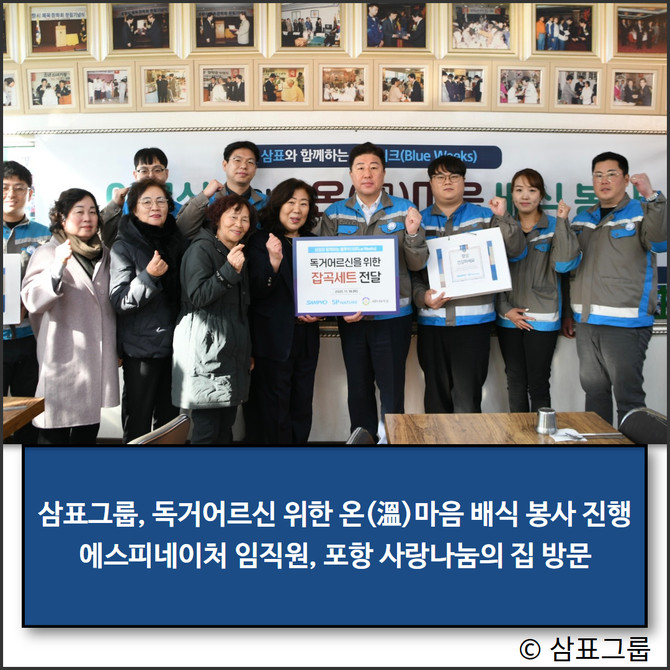 건설기초소재 전문기업 삼표그룹의 계열사인 에스피네이처는 지난 18일 포항 사랑나눔의 집 무료급식소를 방문해 독거 어르신들에게 점심배식 봉사활동을 진행하고 식료품을 전달했다고 20일 밝혔다.