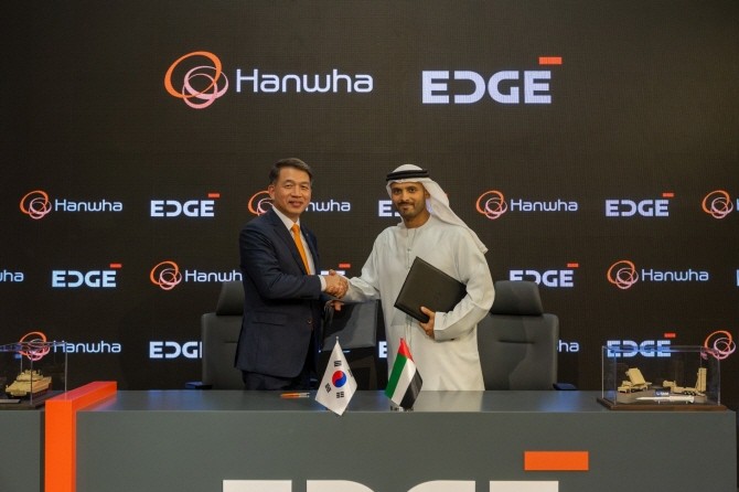 [프라임경제] 한화(000880)가 지난 20일 아랍에미리트(UAE) 두바이에서 진행 중인 '두바이 에어쇼 2025'에서 UAE 국영 방산기업 에지(EDGE) 그룹과 방산 분야 공동 투자·개발을 위한 양해각서(MOU)를 체결했다고 21일 밝혔다.