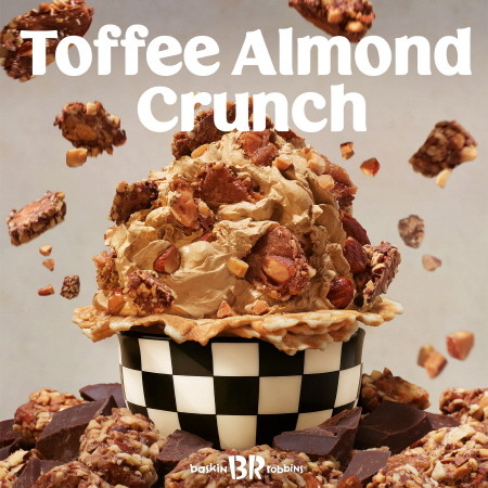 이번에 선보이는 신제품은 두 가지다. 첫 번째는 '토피 아몬드 크런치'로, 매장에서 직접 추출한 에스프레소 아이스크림에 바삭한 토피 초콜릿을 더해 만든 메뉴다. 토핑에 사용되는 토피 초콜릿은 100년 전통 캘리포니아 레시피로 만들어진 제품으로, 밀크초콜릿·버터토피·구운 아몬드가 어우러져 고소하고 진한 풍미를 낸다.