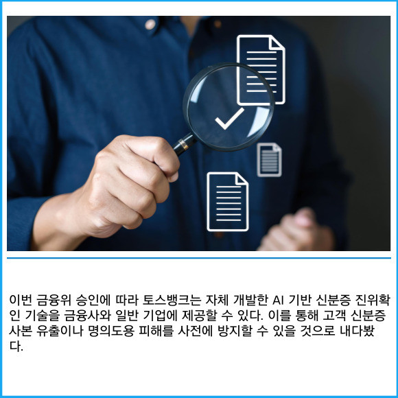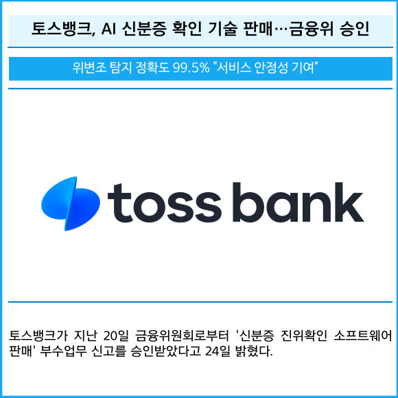 [프라임경제] 토스뱅크가 지난 20일 금융위원회로부터 '신분증 진위확인 소프트웨어 판매' 부수업무 신고를 승인받았다고 24일 밝혔다.