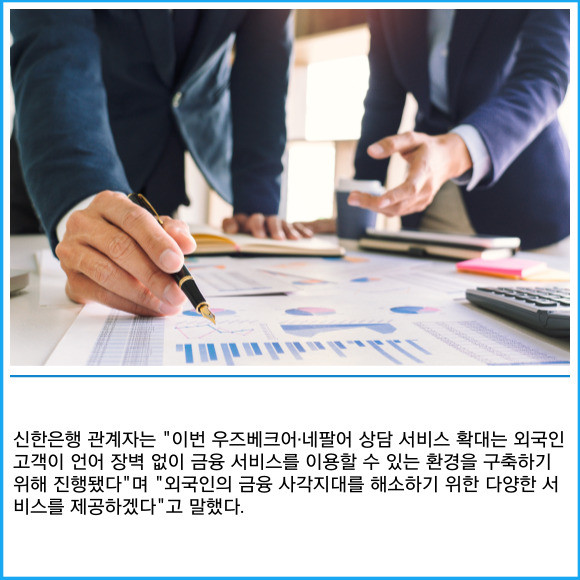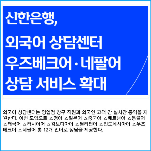 [프라임경제] 신한은행이 외국인 고객의 접근성을 강화하기 위해 외국어 상담센터에 우즈베크어·네팔어 상담 서비스를 새롭게 도입했다고 24일 밝혔다.