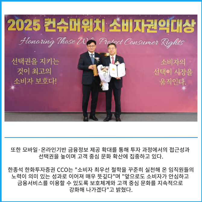 [카드] 한화투자증권 '2025 소비자권익대상' 기업부문 수상