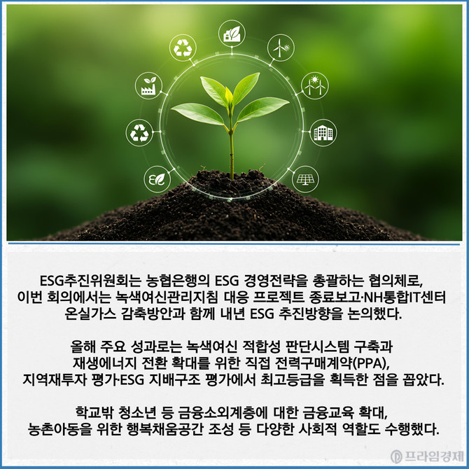 [프라임경제] NH농협은행이 서울 중구 본사에서 환경·사회·지배구조(ESG) 경쟁력 제고를 위한 '2025년 제2차 ESG추진위원회'를 개최했다고 25일 밝혔다.