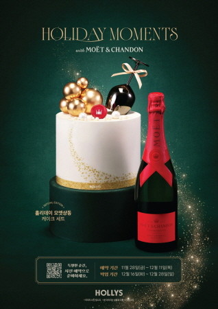 대표 제품인 '홀리데이 샴페인 골드 케이크'는 샴페인을 터트리는 순간의 설렘을 형상화한 케이크다. 270년 전통의 프랑스 샴페인 브랜드 '모엣 & 샹동'의 2025 엔드 오브 이어 리미티드 에디션 '모엣 샹동 임페리얼 750ml'와 구성한 '홀리데이 모엣샹동 케이크 세트'도 마련돼 연말 파티 수요를 겨냥한다.