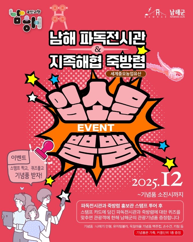 한편, 이벤트 관련 자세한 사항은 남해군 홈페이지 및 SNS를 통해 확인할 수 있다.