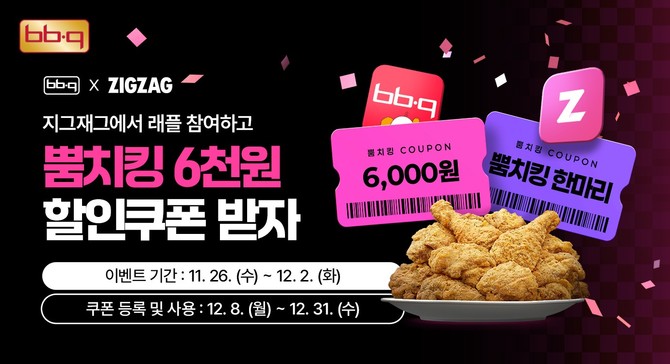 이번 행사는 지그재그 앱 내 'BBQ 래플' 페이지에서 응모할 수 있다. 기간은 12월 2일까지이며, 당첨자는 3일 발표한다.