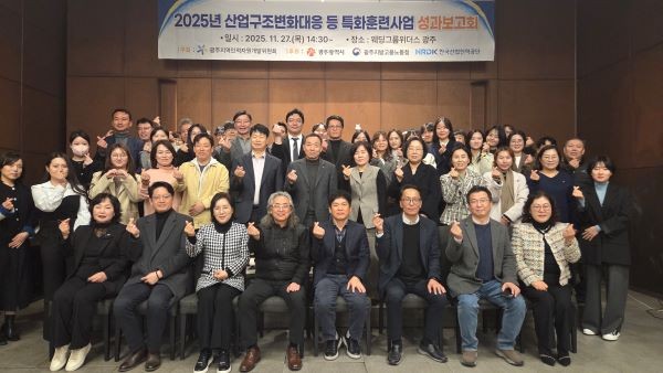 [프라임경제] 광주지역인적자원개발위원회(광주인자위)는 지난 27일 웨딩그룹위더스 광주에서 '2025년 산업구조변화대응 등 특화훈련사업'(산대특) 성과보고회를 열고, 지역 산업 수요에 맞춘 실질적 인재 양성 성과와 혁신적 현장 사례를 공유했다.