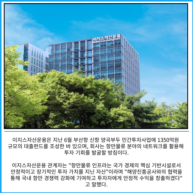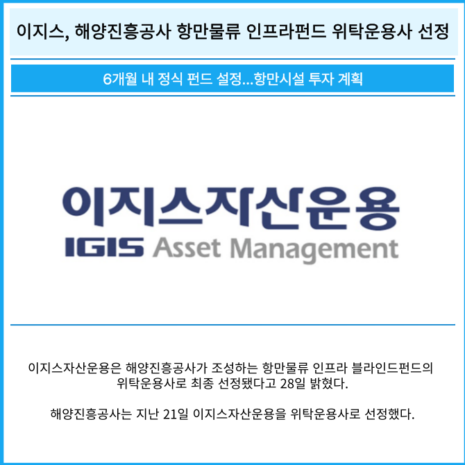 [카드] 이지스, 해양진흥공사 항만물류 인프라펀드 위탁운용사 선정