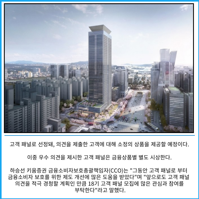 고객 패널은 키움증권의 금융상품과 서비스 개선, 금융소비자보호 등에 대해 고객의 의견을 경청하기 위해 지난 2017년부터 모집해왔다.