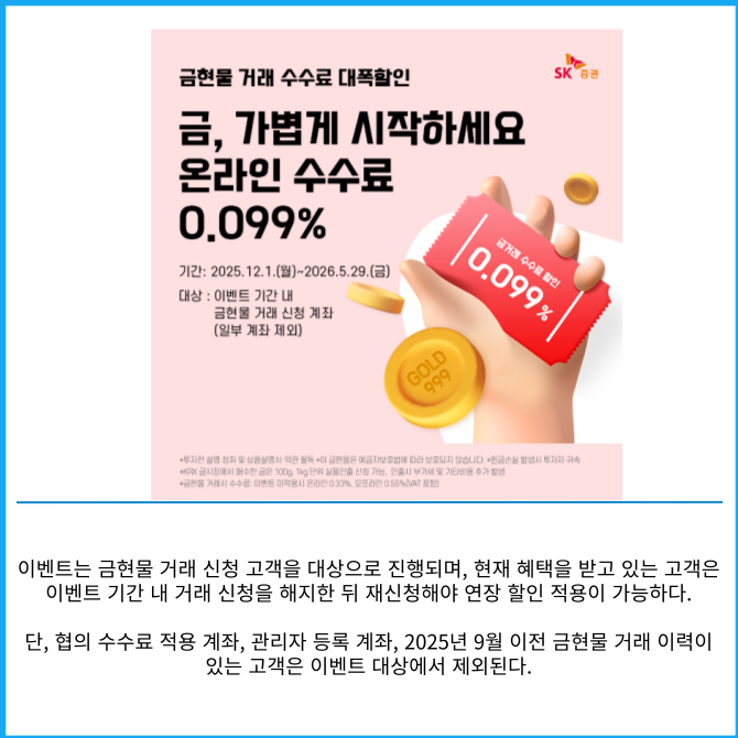 [카드] SK증권, 금현물거래 할인 이벤트 내년 5월까지