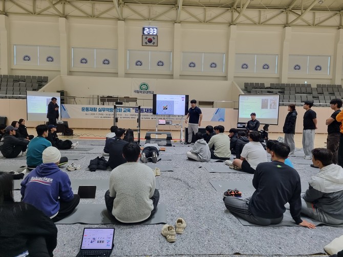 이틀간 진행된 교육 프로그램은 실무 역량 강화를 위한 전문적이고 유익한 내용들로 채워졌다. 첫날에는 '알면 바로 쓰는 초기재활 에센셜 (Knee & Ankle)' 강의를 시작으로 , 견관절 및 주관절 부상 예방 근력운동 및 스트레칭, 그리고 부상 부위별 처치 실습을 포함한 'SFMA 현장적용 이론 및 실습' 등 현장에 바로 적용 가능한 실습 위주의 교육이 이어졌다.