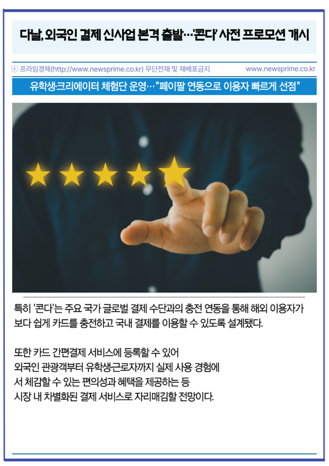 이번 프로모션은 다날의 신사업 출발점으로, 페이팔 연동과 유학생·크리에이터 대상 체험단 운영을 통해 실제 사용성을 검증하고 초기 시장 반응을 확보하는 것이 목표다.