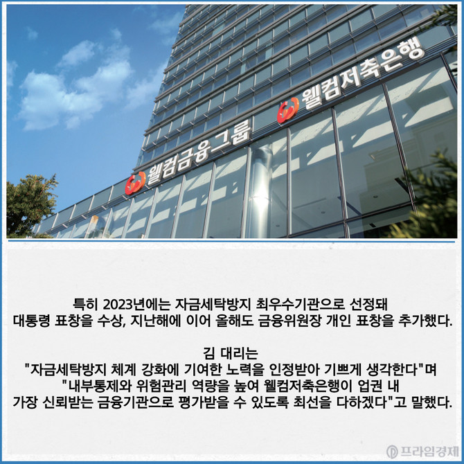 [카드] 웰컴저축은행, 금융위원장 표창 수상