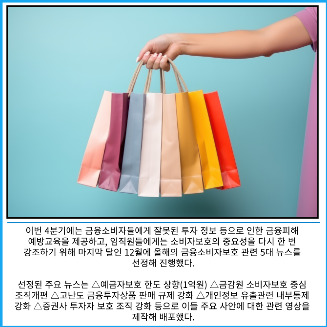 올해 금융소비자보호 관련 5대 뉴스 선정 및 영상 제작 배포