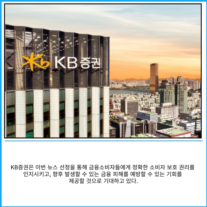 [프라임경제] KB증권은 2025년도 4분기 마지막 '소비자보호의 날'을 맞아, 금융소비자를 대상으로 '금융소비자보호 관련 5대 뉴스'를 선정해 관련 영상을 배포했다고 2일 밝혔다.