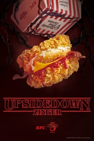 협업의 핵심은 한정판 버거 '업사이드다운징거'다. 대표 메뉴 '징거'를 기묘한 이야기 세계관에서 착안해 재해석했다. 버거 번과 치킨 필렛 구조를 뒤집은 독특한 비주얼이 특징이다. 두툼한 가슴살 필렛 사이에 베이컨, 체다치즈, 버거번을 넣어 식감을 풍부하게 완성했다. 여기에 매운 파이어 칠리 소스와 고소한 페퍼 드레싱을 더해 색다른 풍미를 구현했다.