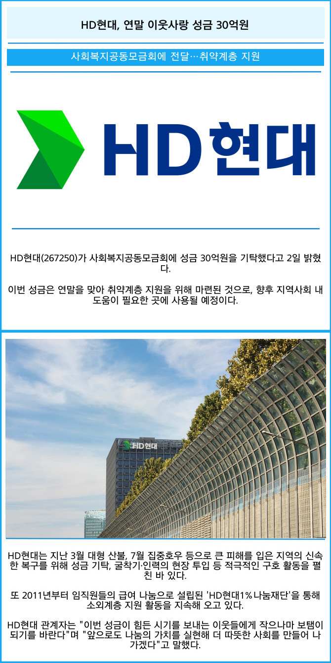 [카드] HD현대, 연말 이웃사랑 성금 30억원