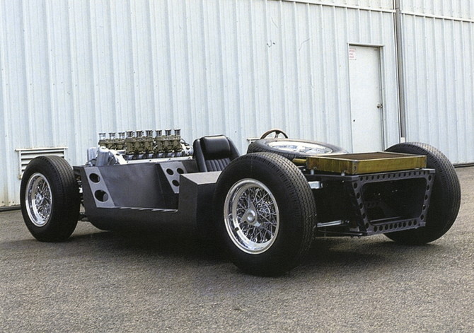얇은 강판으로 제작한 경량 섀시 위에 거대한 4.0ℓ V12 엔진이 뒷 차축 사이에 가로로 배치된 파격적인 구성은 당시 양산차에서는 보기 어려웠던 레이싱 기술 기반의 혁신적 설계였으며 완성차가 아님에도 순수한 기계적 구조만으로 관람객들의 시선을 사로잡았다.