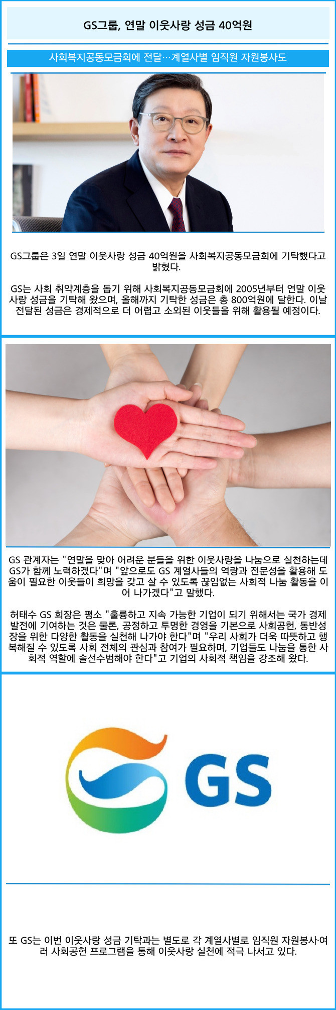[카드] GS그룹, 연말 이웃사랑 성금 40억원