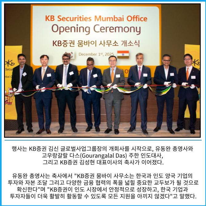 [프라임경제] KB증권은 인도 금융시장 진출을 본격화하기 위한 '뭄바이 사무소 개소식'을 성황리에 개최했다고 3일 밝혔다.