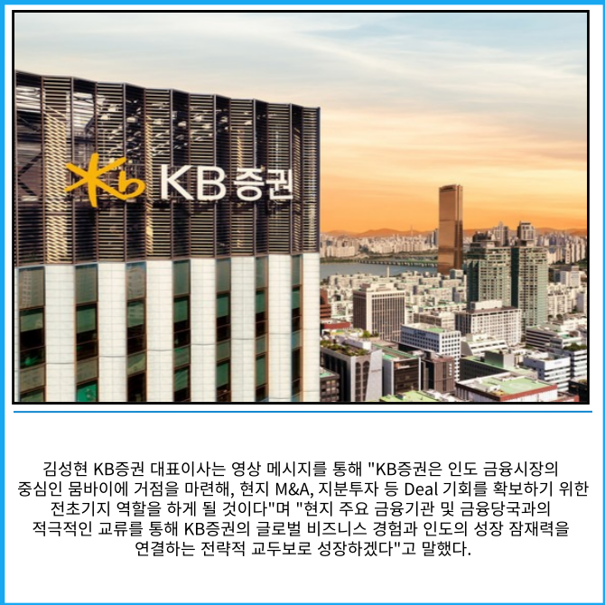 [카드] KB증권, 인도 금융시장 진출 위한 '뭄바이 사무소' 오픈