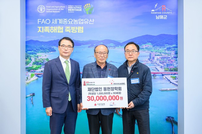 [프라임경제] 남해군은 지난 2일 재단법인 동헌장학회(회장 강진용)가 저소득층 학생들을 위한 장학금 3천만원을 기탁했다고 4일 밝혔다.