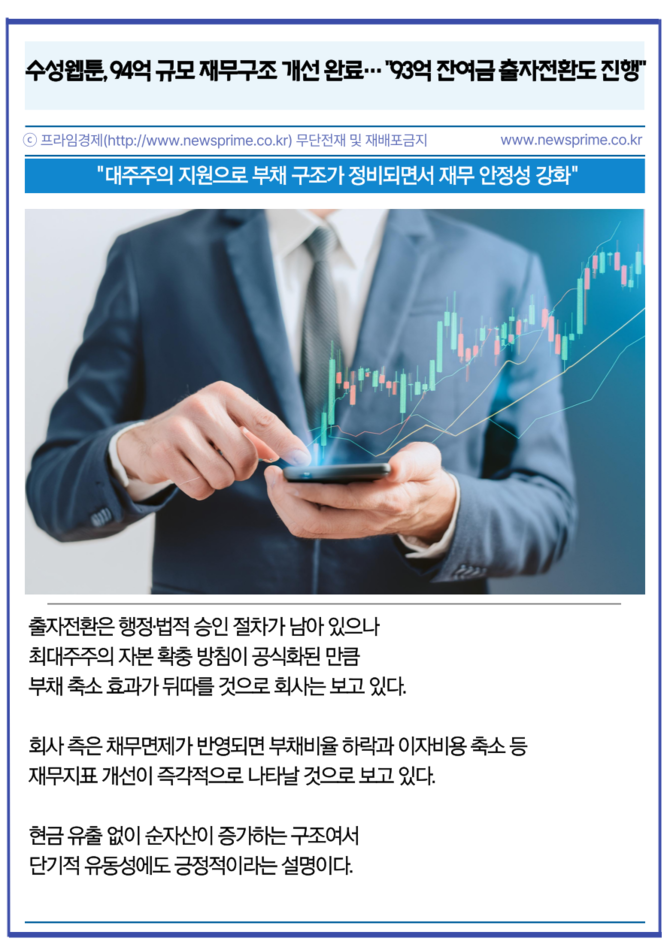 [카드] 수성웹툰, 94억 규모 재무구조 개선 완료…"93억 잔여금 출자전환도 진행"