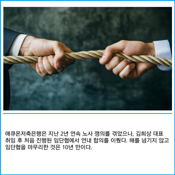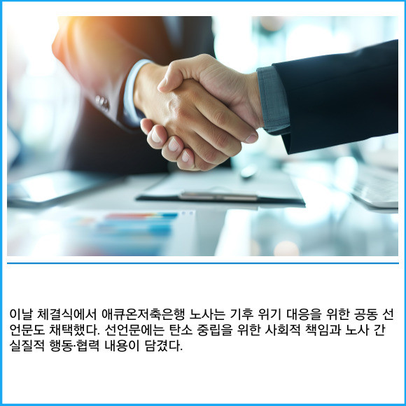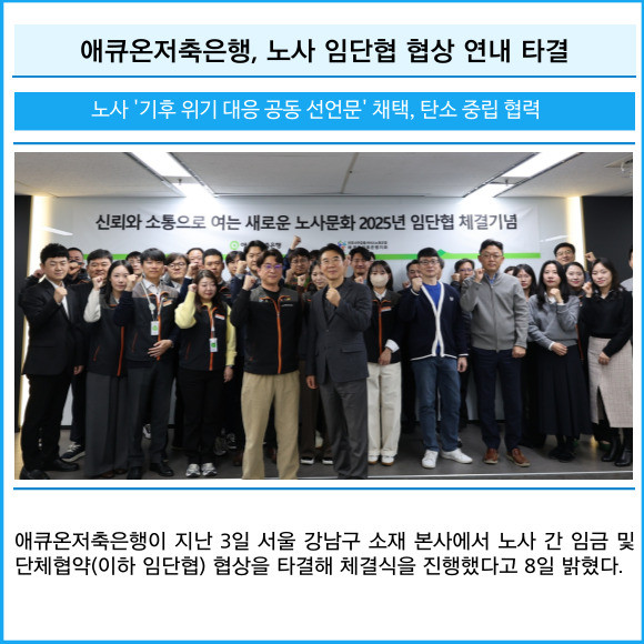 [프라임경제] 애큐온저축은행이 지난 3일 서울 강남구 소재 본사에서 노사 간 임금 및 단체협약(이하 임단협) 협상을 타결해 체결식을 진행했다고 8일 밝혔다.