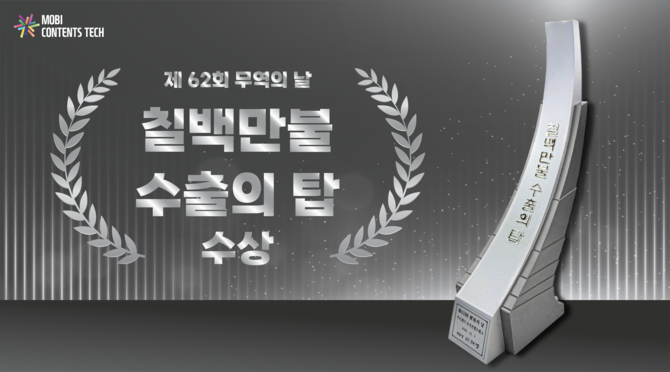[프라임경제] 종합 미디어 콘텐츠그룹 모비데이즈(363260) 자회사 모비콘텐츠테크가 지난 4일 서울 삼성동 코엑스에서 열린 '제62회 무역의 날 행사'에서 '700만불 수출의 탑'을 수상했다고 8일 밝혔다.
