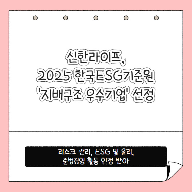 [카드] 신한라이프, 2025 한국ESG기준원 '지배구조 우수기업' 선정
