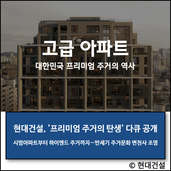 이번 영상을 통해 올해 '도시정비 사상 첫 연간 수주 10조원 돌파'를 수립한 현대건설이 지난 반세기 이상 대한민국 주거 문화를 이끌어 온 역할을 재조명했다. 프리미엄 주거의 탄생은 여의도 시범아파트와 압구정 현대아파트, 초고층·하이엔드·하이퍼엔드 주거 등 현대건설의 주요 프로젝트를 통해 프리미엄 주거의 기준이 어떻게 형성·발전되어 왔는지를 시간의 흐름에 따라 정리했다.
