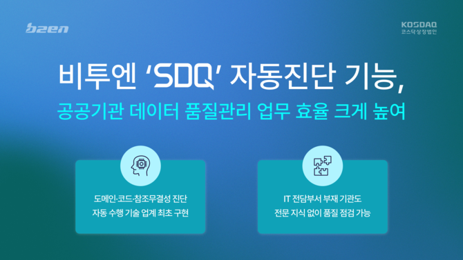 박순혁 비투엔 솔루션실장은 "SDQ는 공공기관의 실무 현장에서 꾸준히 활용되며 신뢰성을 인정받아왔다"며 "이번 자동진단 기능 업데이트가 고객사의 실제 업무 효율 향상으로 이어진 만큼 앞으로도 공공기관이 보다 효과적인 데이터 품질관리 체계를 구축할 수 있도록 기술 혁신을 지속하겠다"고 말했다.