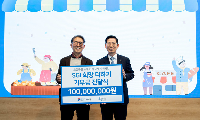 SGI서울보증은 지난 11일 '함께만드는세상'에 소상공인의 경영환경 개선을 위한 'SGI 희망 더하기' 기부금 1억원을 전달했다. SGI서울보증이 기부한 1억원은 소상공인의 노후기기 교체비용으로 사용될 예정이다.