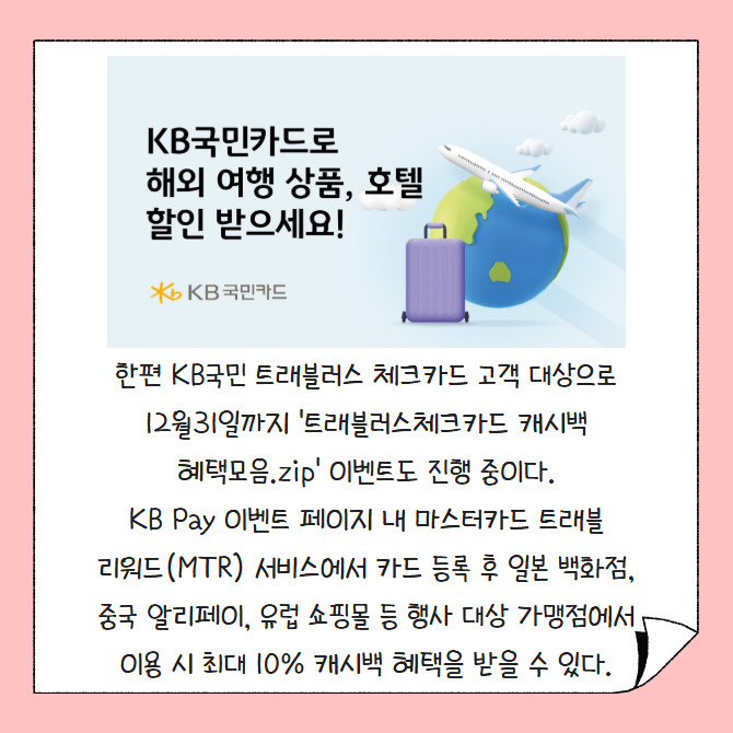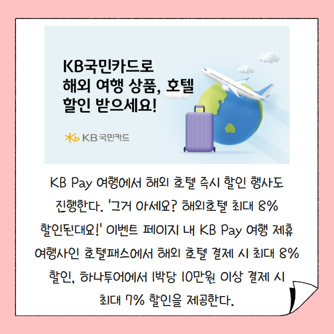 [카드] KB국민카드, 해외 여행 상품·호텔 결제 할인 제공