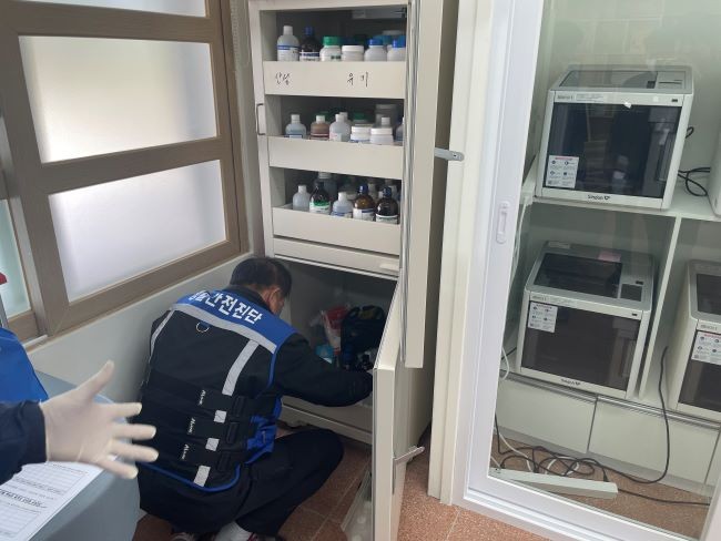 점검 항목에는 △안전관리계획 수립 여부 △안전교육 실시 현황 △물질안전보건자료(MSDS) 비치 여부 △비상샤워기 등 안전설비 작동 상태 △시약·폐시약 관리 실태 등이 포함됐으며, 현장의 의견도 함께 수렴해 안전관리 실태를 꼼꼼히 확인했다.