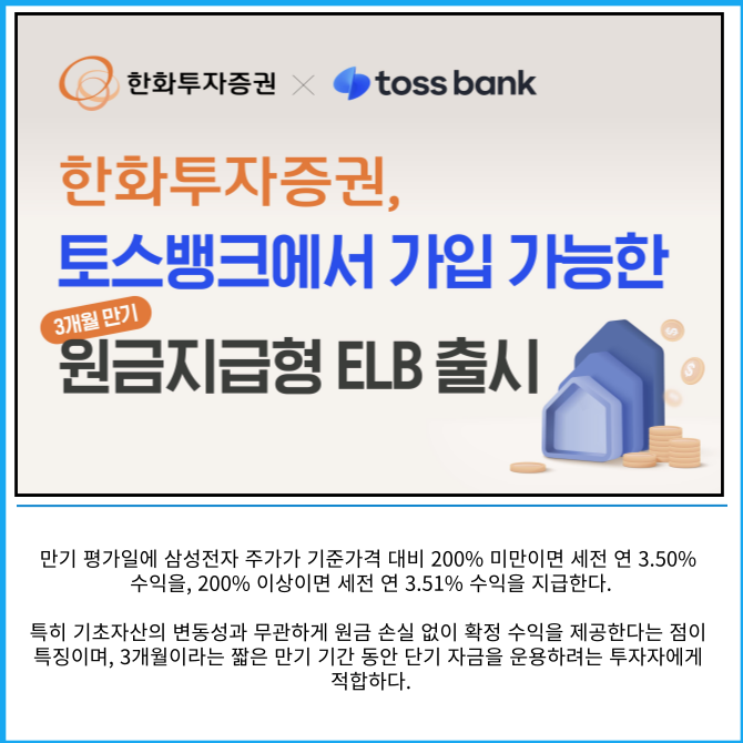 [카드] 한화투자증권, 3개월 만기 원금지급형 ELB 출시