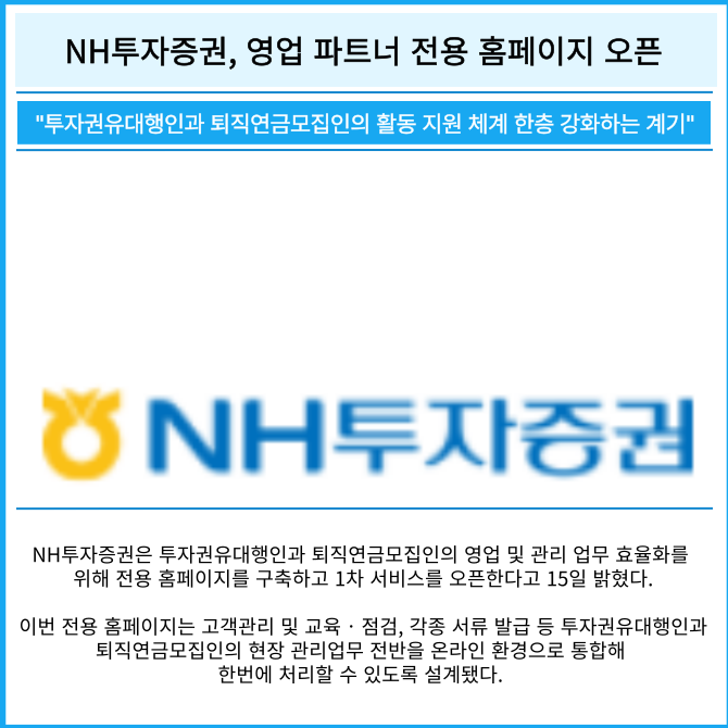 [카드] NH투자증권, 영업 파트너 전용 홈페이지 오픈