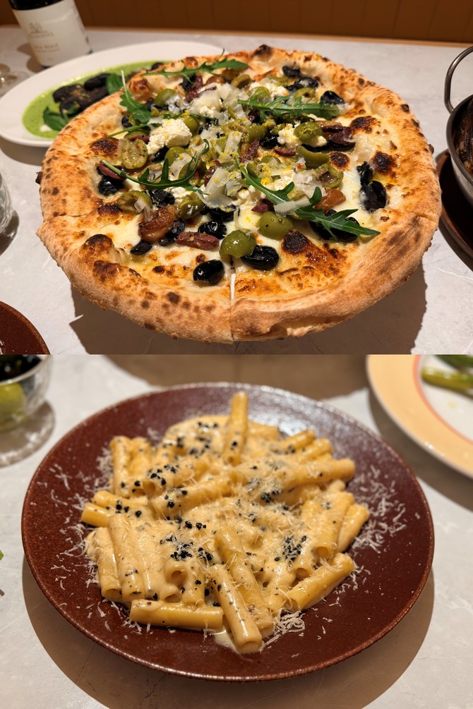 시그니처 파스타 '카치오 올리페페'는 재료의 단순함이 오히려 인상적이다. 치즈와 후추만으로 깊은 풍미를 끌어내는 클래식한 조합에 원통형 파스타 '지타(Zita)'를 사용해 소스가 면 속 깊숙이 스며든다. 강렬한 후추향과 더불어 마무리로 더해진 올리브 크럼블이 진한 풍미를 정리하며 깔끔한 균형감을 잡는다.