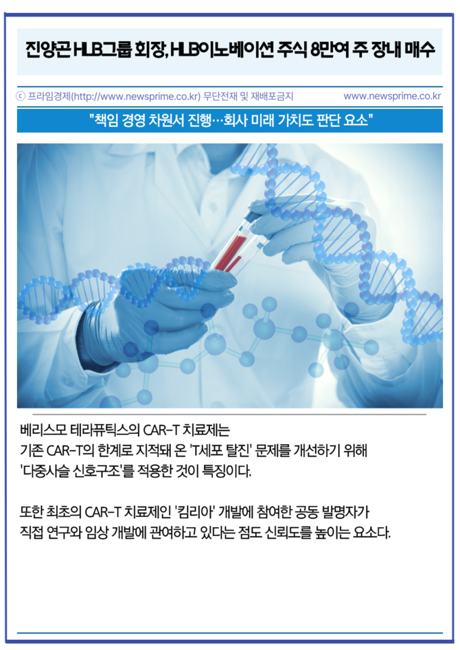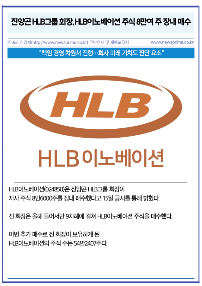 [카드] 진양곤 HLB그룹 회장, HLB이노베이션 주식 8만여 주 장내 매수