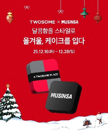 프리미엄 디저트 카페 투썸플레이스가 패션 플랫폼 무신사와 손잡고 연말 시즌 제휴 이벤트인 '올겨울, 케이크를 입다'를 진행한다고 밝혔다. 이번 이벤트는 이날부터 오는 28일까지 약 2주간 양사 앱에서 동시 운영된다.