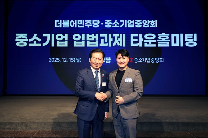 이번 타운홀미팅은 지난 9월 정청래 더불어민주당 당대표와 중소기업인 간담회 후속 조치다. 더불어민주당 지도부와 중소기업·벤처·스타트업 관계자 등 약 80명이 참석했다.