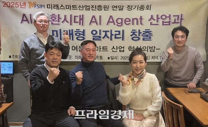 [프라임경제] AI 기술 고도화로 산업 구조와 직무 개념이 빠르게 재편되는 가운데, AI Agent 산업을 중심으로 한 미래형 일자리 논의가 본격화되고 있다. 미래스마트산업진흥원(대표 김범준)은 지난 13일 오후 서울 강남 정호정에서 'AI 전환시대 AI Agent 산업과 미래형 일자리 창출'을 주제로 2025년 연말 정기총회를 개최했다.