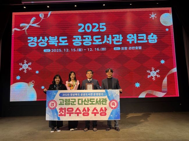[프라임경제] 고령군(군수 이남철) 다산도서관은 2023년·2024년 2년 연속 '대상'을 수상한데 이어, 올해 다시 최우수상을 받으며 3년 연속 최상위권 성과를 이어갔다.