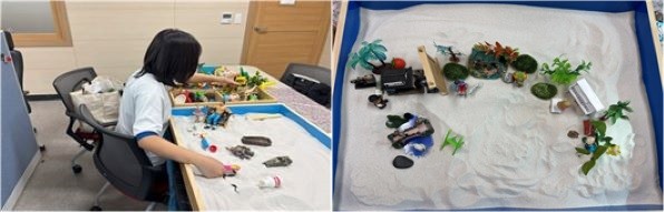 모래놀이 치료는 상담 전문가의 지도하에 학생들이 모래 상자 속에 미니어처를 자유롭게 배치하며 내면의 세계와 갈등을 비언어적으로 표현하고 해소하는 심리 요법이다.