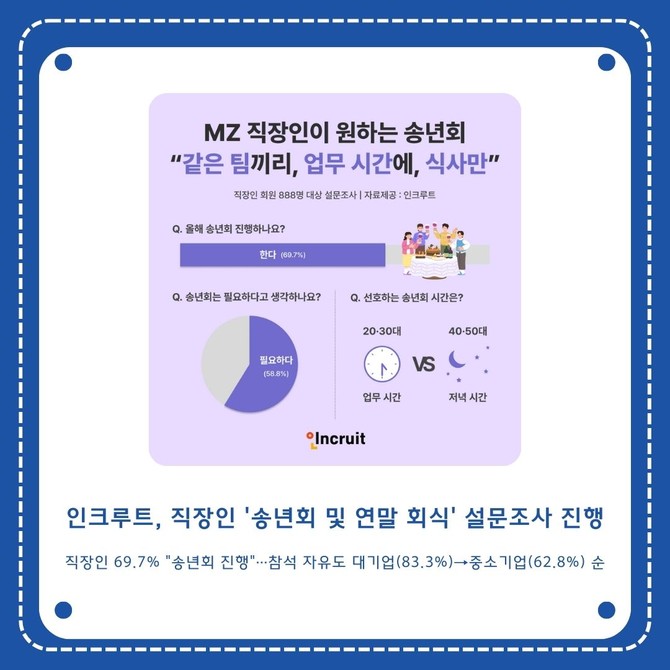[카드] 인크루트, 직장인 '송년회 및 연말 회식' 설문조사