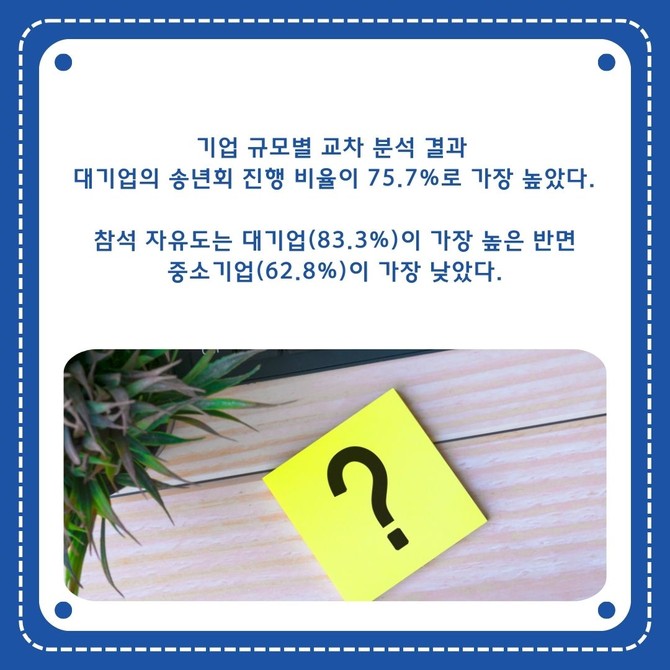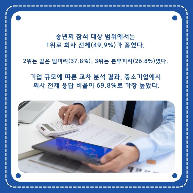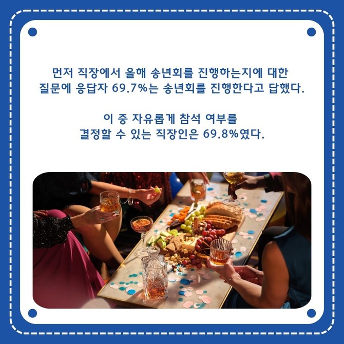 직장인 69.7% "송년회 진행"…참석 자유도 대기업(83.3%)→중소기업(62.8%) 순