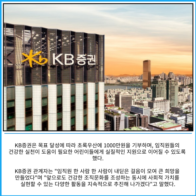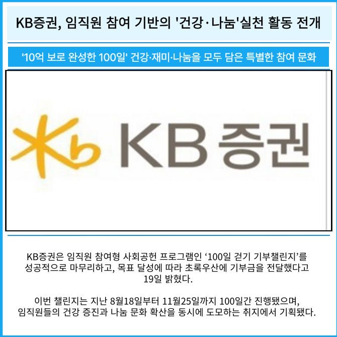 [카드] KB증권, 임직원 참여 기반의 '건강·나눔' 실천 활동 전개