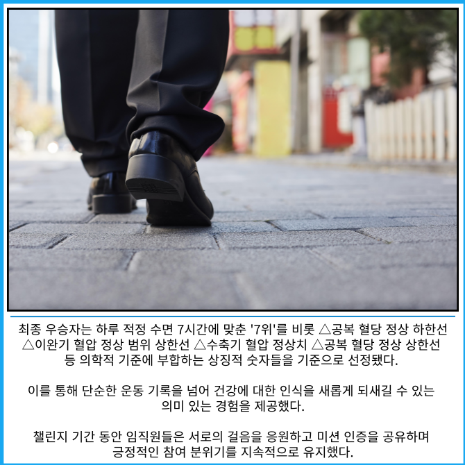 이번 챌린지는 지난 8월18일부터 11월25일까지 100일간 진행됐으며, 임직원들의 건강 증진과 나눔 문화 확산을 동시에 도모하는 취지에서 기획됐다.