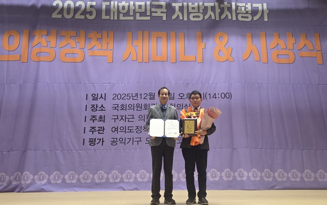 지방자치평가 의정정책대상은 공약 이행률, 본회의 출석률, 입법 실적, 정책 제안, 주민 소통 활동 등을 종합적으로 심사해 수상자를 선정하는 권위 있는 상이다.
