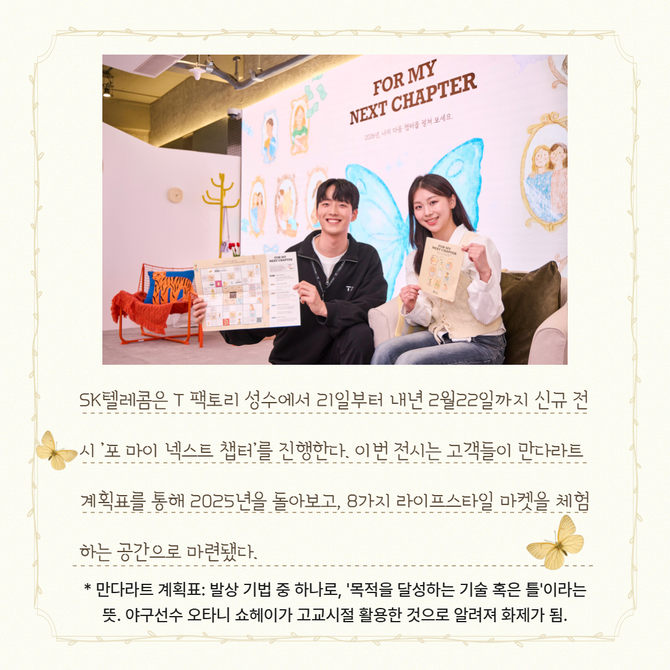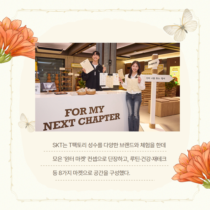[프라임경제] SK텔레콤(017670)은 자사의 플래그십 스토어 T 팩토리 성수에서 내년 2월22일까지 신규 전시 '포 마이 넥스트 챕터(FOR MY NEXT CHAPTER)'를 진행한다고 21일 밝혔다.